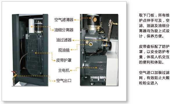 (4)空压机原装备件是专门设计、制造的,推荐使用正宗备件,以保证空压机工作的可靠性、安全性。