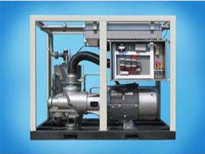 螺杆空气压缩机组是由螺杆空压机主机、电动机、油气分离器、冷却器、风扇、水分离器、电气控制箱以及气管路、油管路、调节系统等配件组成。压缩机主机壳体内有一对经过精密加工相互啮合的阴、阳转子。对于直联机组,电机通过弹性联轴器直接驱动阳转子,对于齿轮传动机组,电机通过弹性联轴器驱动齿轮轴,再通过齿轮传动给阳转子。喷入的油与空气混合后在转子齿槽间有效地压缩,油在转子齿槽间形成一层油膜,避免金属与金属直接接触并密封转子各部的间隙和吸收大部分的压缩热量。机组无油泵,靠油气分离器中的气体压力将油压送至各润滑点。从压缩机排出的油、气混合物,经过油气分离器,用旋风分离的方法粗分离出大部分油,剩余的油经过油分离器滤芯作进一步精分离而沉降在滤芯底部。滤芯底部的油利用压差由回油管引入压缩机,在油气分离器上装有油位液面计、最小压力阀和安全阀。油气分离器也兼作油箱和储气罐。